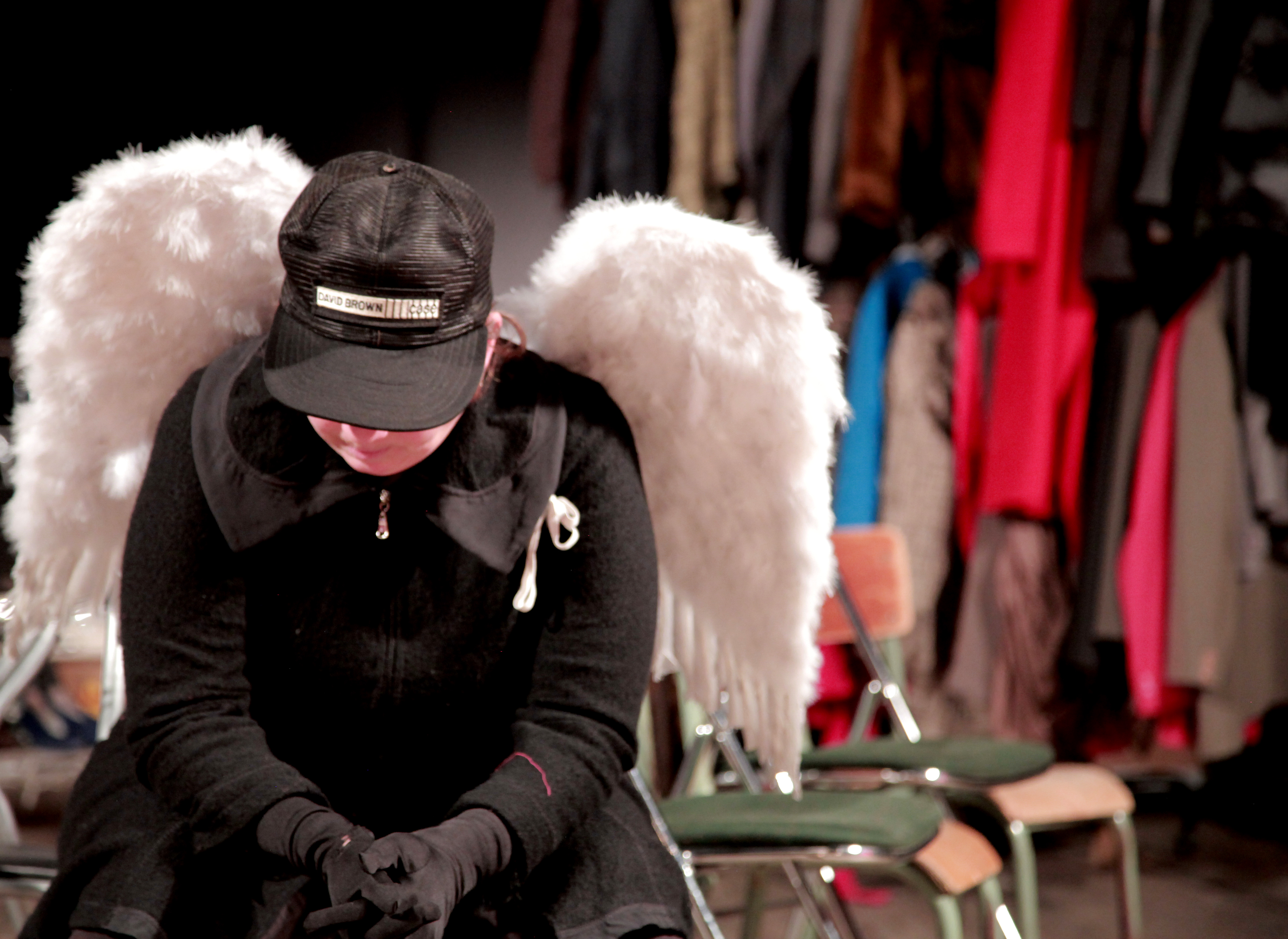 Nous sommes de passage réunit une équipe de dix artistes (comédiens, musicien, auteur, scénographe) qui travaillent sur une braderie fictive et un défilé de fantômes émanant de la matière vêtement.
