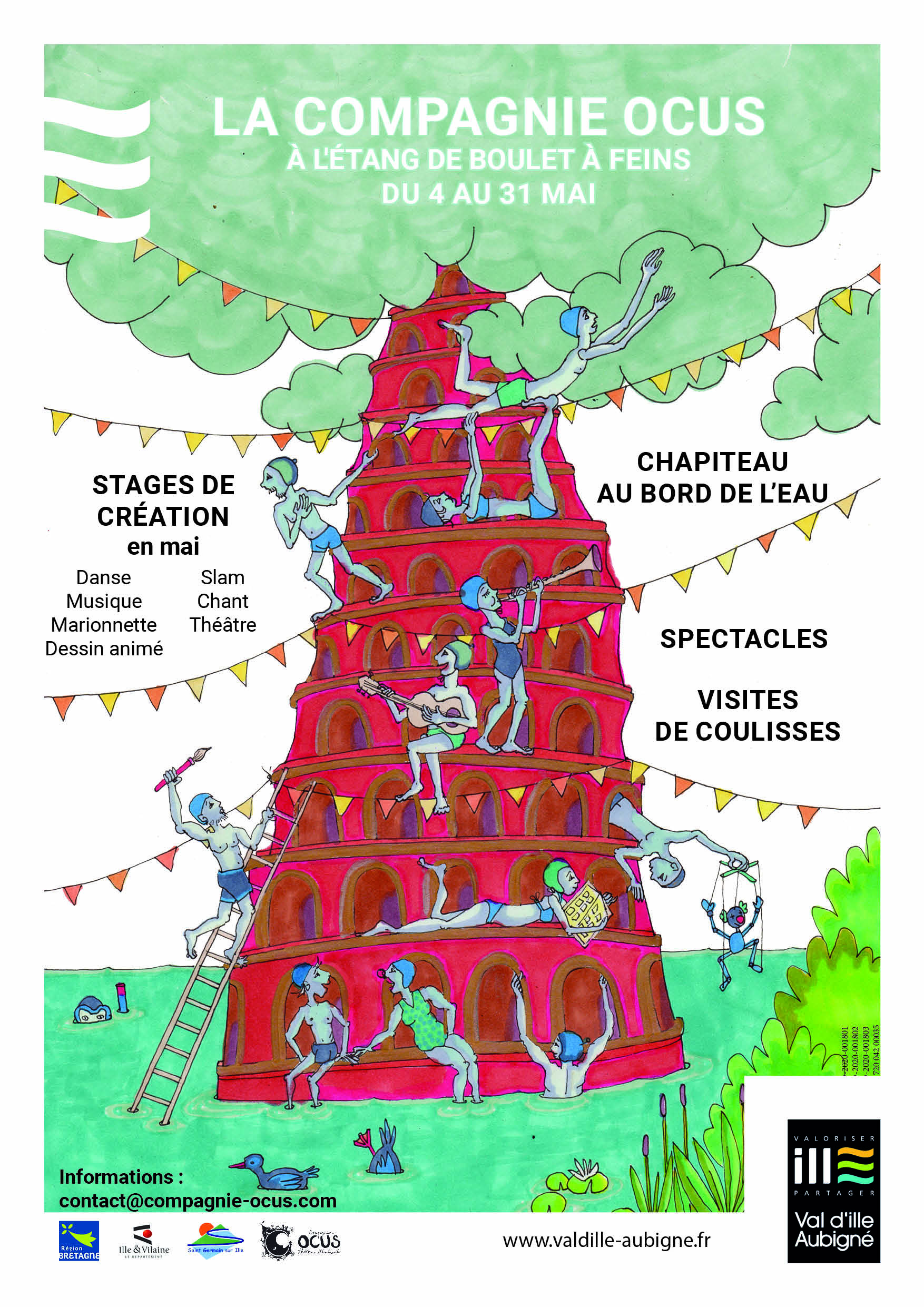 En mai, nous poserons notre chapiteau et nos pénates au Domaine de Boulet à Feins. Au programme : des spectacles, des représentations du Dédale Palace, des visites de coulisses, des soirées impromptues... Et au cœur de l’aventure : L’étang de Babel, une grande création collective qui réunira une centaine d’artistes professionnels et amateurs.
