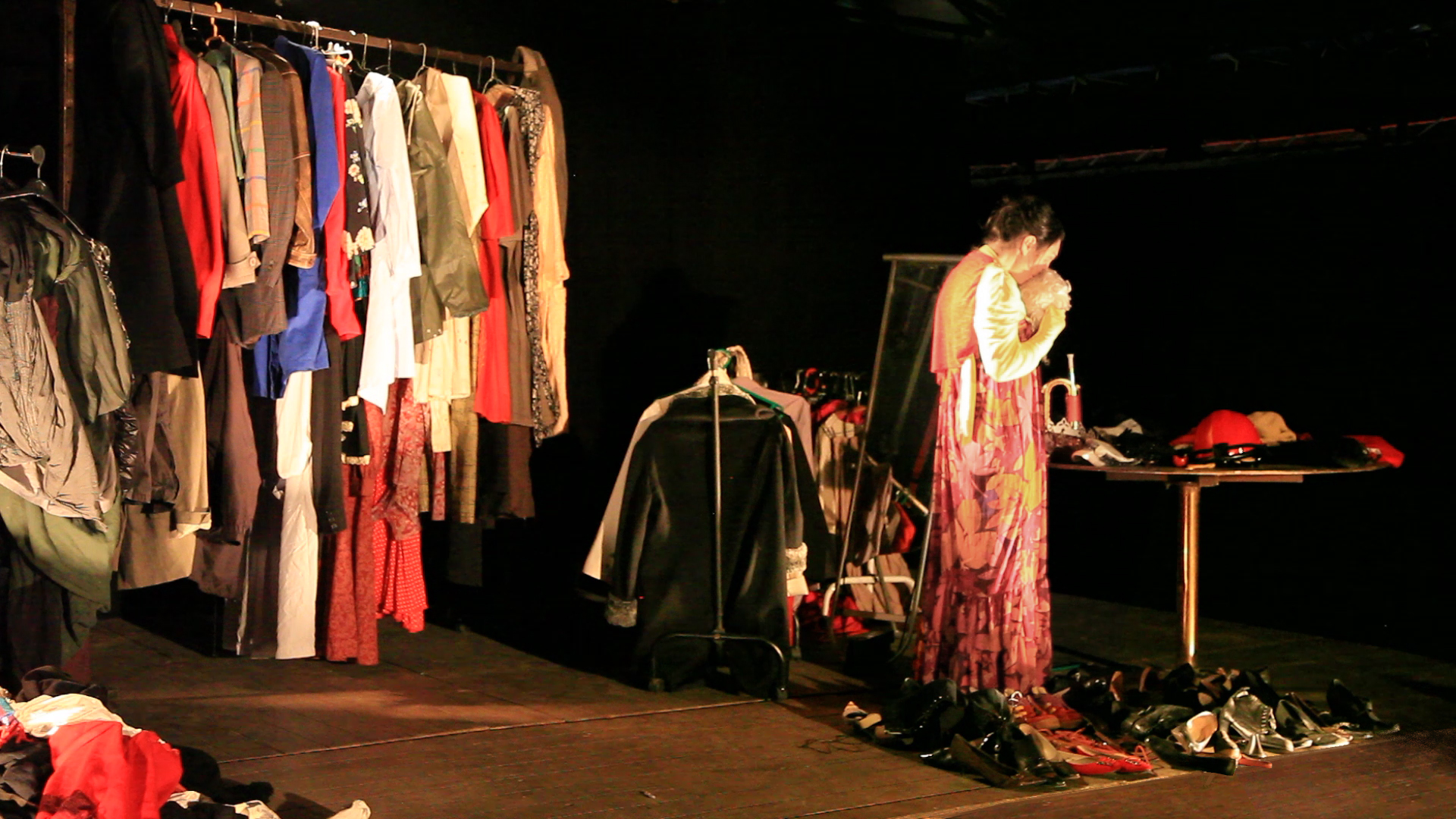 Nous vous proposons de participer à l'écriture de “Nous sommes de passage”. Pour ce, nous demandons à chacun des participants de venir avec un habit choisi auquel il tient particulièrement. A partir de cet habit, nous vous proposerons de nous livrer une histoire touchant à ce vêtement. Histoires vécues ou histoires inventées, nous n'irons pas vérifier! Cet atelier récolte sera l'occasion d'une sensibilisation au travail de clown et à l'écriture de plateau à travers des jeux dirigés.